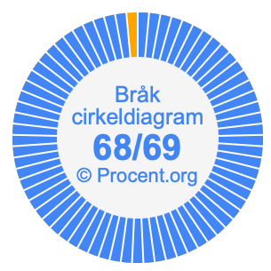 Dessutom kommer vi också att illustrera bråket 68/69 i ett cirkeldiagram och 68/69 som procent i ett cirkeldiagram.