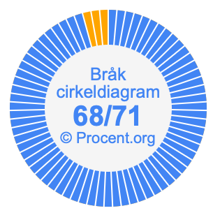68/71 är ett bråk som betyder 68 av 71, och procent betyder något av 100. Vi kan därför göra följande ekvation för att få 68/71 som procent: