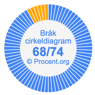 Dessutom kommer vi också att illustrera bråket 68/74 i ett cirkeldiagram och 68/74 som procent i ett cirkeldiagram.