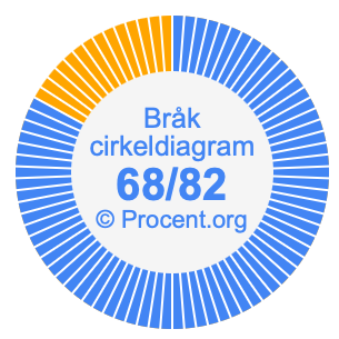 Dessutom kommer vi också att illustrera bråket 68/82 i ett cirkeldiagram och 68/82 som procent i ett cirkeldiagram.