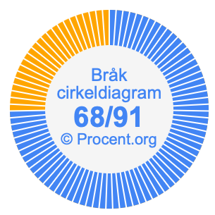 Illustrationerna nedan visar hur 68/91 och 74,73% delar upp ett cirkeldiagram olika men täcker samma område eftersom de är desamma.