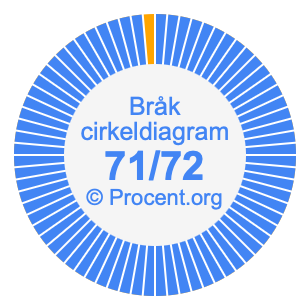 Dessutom kommer vi också att illustrera bråket 71/72 i ett cirkeldiagram och 71/72 som procent i ett cirkeldiagram.