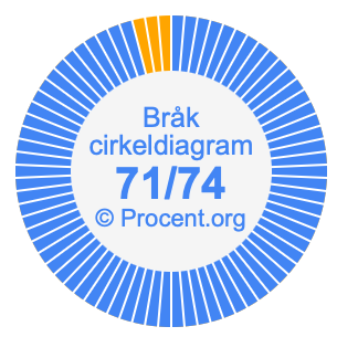Dessutom kommer vi också att illustrera bråket 71/74 i ett cirkeldiagram och 71/74 som procent i ett cirkeldiagram.