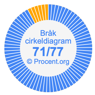 Dessutom kommer vi också att illustrera bråket 71/77 i ett cirkeldiagram och 71/77 som procent i ett cirkeldiagram.