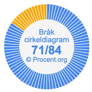 Dessutom kommer vi också att illustrera bråket 71/84 i ett cirkeldiagram och 71/84 som procent i ett cirkeldiagram.