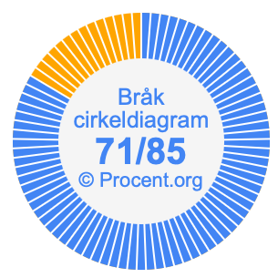 Illustrationerna nedan visar hur 71/85 och 83,53% delar upp ett cirkeldiagram olika men täcker samma område eftersom de är desamma.