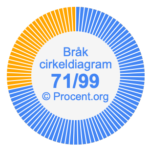 71/99 är ett bråk som betyder 71 av 99, och procent betyder något av 100. Vi kan därför göra följande ekvation för att få 71/99 som procent: