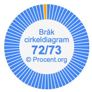 Dessutom kommer vi också att illustrera bråket 72/73 i ett cirkeldiagram och 72/73 som procent i ett cirkeldiagram.