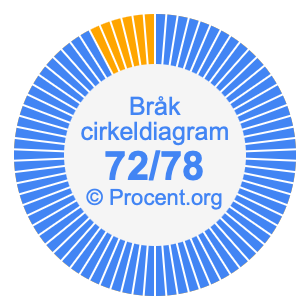 Dessutom kommer vi också att illustrera bråket 72/78 i ett cirkeldiagram och 72/78 som procent i ett cirkeldiagram.