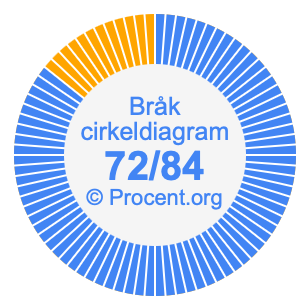 Dessutom kommer vi också att illustrera bråket 72/84 i ett cirkeldiagram och 72/84 som procent i ett cirkeldiagram.