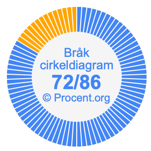 Illustrationerna nedan visar hur 72/86 och 83,72% delar upp ett cirkeldiagram olika men täcker samma område eftersom de är desamma.