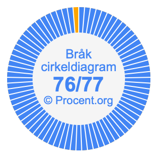 Dessutom kommer vi också att illustrera bråket 76/77 i ett cirkeldiagram och 76/77 som procent i ett cirkeldiagram.