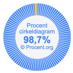 Illustrationerna nedan visar hur 76/77 och 98,7% delar upp ett cirkeldiagram olika men täcker samma område eftersom de är desamma.