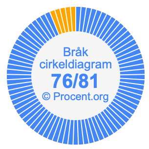 Dessutom kommer vi också att illustrera bråket 76/81 i ett cirkeldiagram och 76/81 som procent i ett cirkeldiagram.