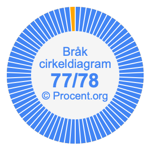 Dessutom kommer vi också att illustrera bråket 77/78 i ett cirkeldiagram och 77/78 som procent i ett cirkeldiagram.