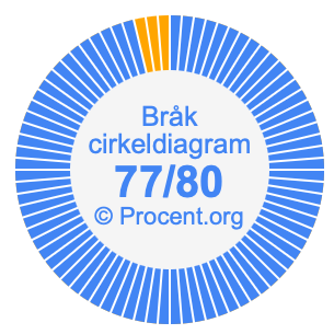 Dessutom kommer vi också att illustrera bråket 77/80 i ett cirkeldiagram och 77/80 som procent i ett cirkeldiagram.