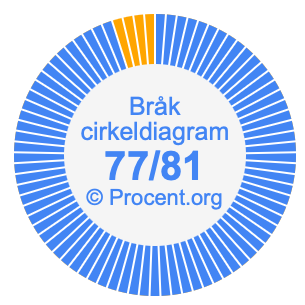 Illustrationerna nedan visar hur 77/81 och 95,06% delar upp ett cirkeldiagram olika men täcker samma område eftersom de är desamma.
