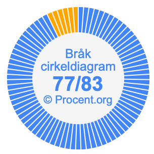 Dessutom kommer vi också att illustrera bråket 77/83 i ett cirkeldiagram och 77/83 som procent i ett cirkeldiagram.