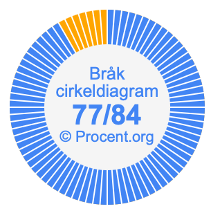 Dessutom kommer vi också att illustrera bråket 77/84 i ett cirkeldiagram och 77/84 som procent i ett cirkeldiagram.
