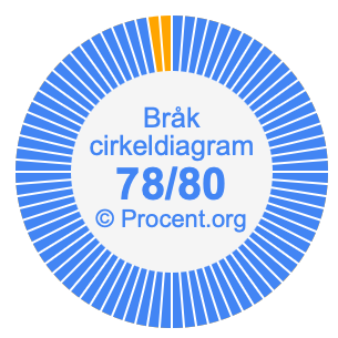 Dessutom kommer vi också att illustrera bråket 78/80 i ett cirkeldiagram och 78/80 som procent i ett cirkeldiagram.