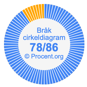 Dessutom kommer vi också att illustrera bråket 78/86 i ett cirkeldiagram och 78/86 som procent i ett cirkeldiagram.