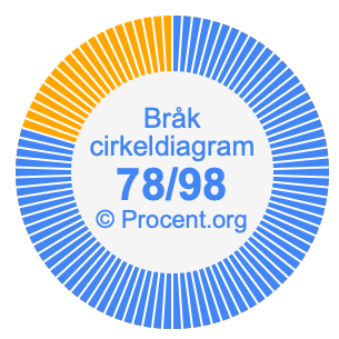 Dessutom kommer vi också att illustrera bråket 78/98 i ett cirkeldiagram och 78/98 som procent i ett cirkeldiagram.