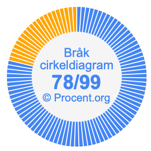 Illustrationerna nedan visar hur 78/99 och 78,79% delar upp ett cirkeldiagram olika men täcker samma område eftersom de är desamma.