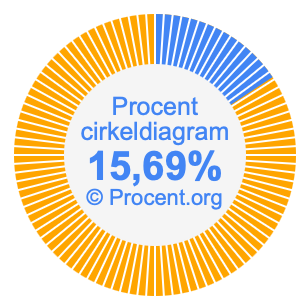 Illustrationerna nedan visar hur 8/51 och 15,69% delar upp ett cirkeldiagram olika men täcker samma område eftersom de är desamma.