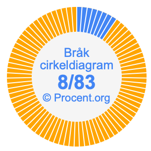 Dessutom kommer vi också att illustrera bråket 8/83 i ett cirkeldiagram och 8/83 som procent i ett cirkeldiagram.