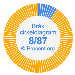 Dessutom kommer vi också att illustrera bråket 8/87 i ett cirkeldiagram och 8/87 som procent i ett cirkeldiagram.