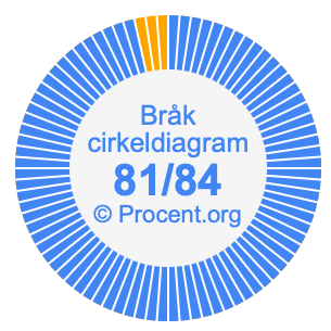 Dessutom kommer vi också att illustrera bråket 81/84 i ett cirkeldiagram och 81/84 som procent i ett cirkeldiagram.