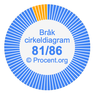 Dessutom kommer vi också att illustrera bråket 81/86 i ett cirkeldiagram och 81/86 som procent i ett cirkeldiagram.