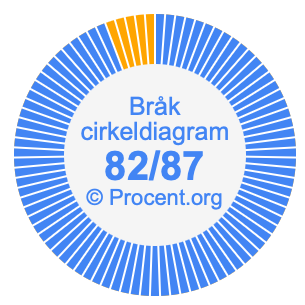Dessutom kommer vi också att illustrera bråket 82/87 i ett cirkeldiagram och 82/87 som procent i ett cirkeldiagram.