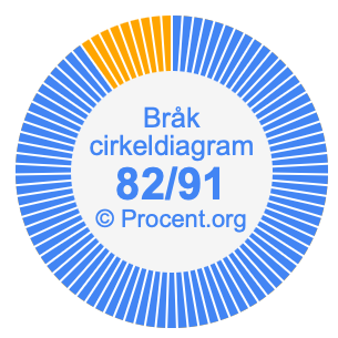 Dessutom kommer vi också att illustrera bråket 82/91 i ett cirkeldiagram och 82/91 som procent i ett cirkeldiagram.
