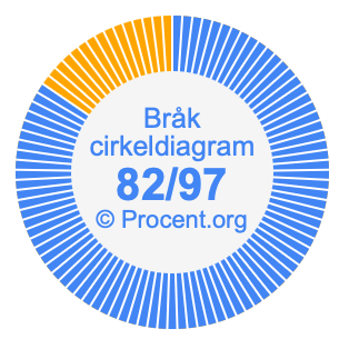 Dessutom kommer vi också att illustrera bråket 82/97 i ett cirkeldiagram och 82/97 som procent i ett cirkeldiagram.
