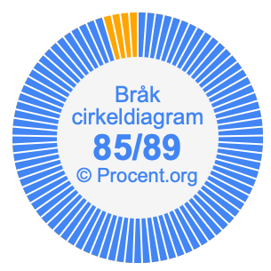 Dessutom kommer vi också att illustrera bråket 85/89 i ett cirkeldiagram och 85/89 som procent i ett cirkeldiagram.