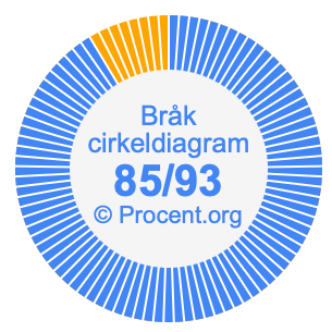 Dessutom kommer vi också att illustrera bråket 85/93 i ett cirkeldiagram och 85/93 som procent i ett cirkeldiagram.