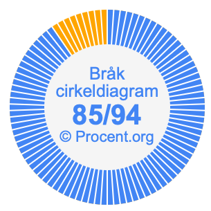 Dessutom kommer vi också att illustrera bråket 85/94 i ett cirkeldiagram och 85/94 som procent i ett cirkeldiagram.