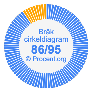 Dessutom kommer vi också att illustrera bråket 86/95 i ett cirkeldiagram och 86/95 som procent i ett cirkeldiagram.