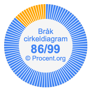 Dessutom kommer vi också att illustrera bråket 86/99 i ett cirkeldiagram och 86/99 som procent i ett cirkeldiagram.