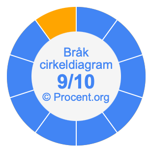 Dessutom kommer vi också att illustrera bråket 9/10 i ett cirkeldiagram och 9/10 som procent i ett cirkeldiagram.