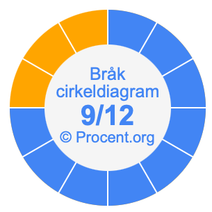 Illustrationerna nedan visar hur 9/12 och 75% delar upp ett cirkeldiagram olika men täcker samma område eftersom de är desamma.