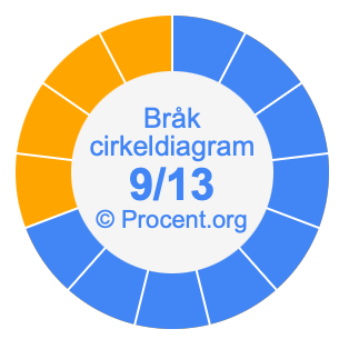 Illustrationerna nedan visar hur 9/13 och 69,23% delar upp ett cirkeldiagram olika men täcker samma område eftersom de är desamma.