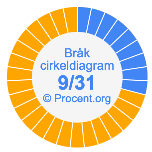 Dessutom kommer vi också att illustrera bråket 9/31 i ett cirkeldiagram och 9/31 som procent i ett cirkeldiagram.