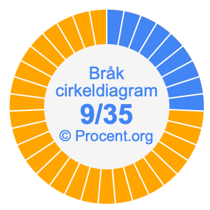 Dessutom kommer vi också att illustrera bråket 9/35 i ett cirkeldiagram och 9/35 som procent i ett cirkeldiagram.