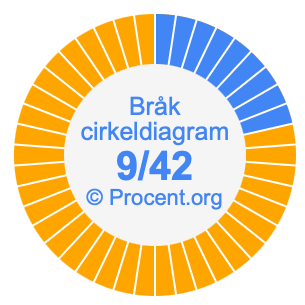 Illustrationerna nedan visar hur 9/42 och 21,43% delar upp ett cirkeldiagram olika men täcker samma område eftersom de är desamma.