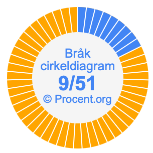 Dessutom kommer vi också att illustrera bråket 9/51 i ett cirkeldiagram och 9/51 som procent i ett cirkeldiagram.