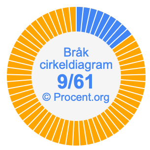 Dessutom kommer vi också att illustrera bråket 9/61 i ett cirkeldiagram och 9/61 som procent i ett cirkeldiagram.