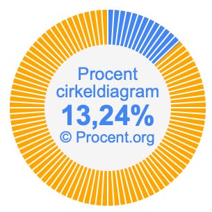 Illustrationerna nedan visar hur 9/68 och 13,24% delar upp ett cirkeldiagram olika men täcker samma område eftersom de är desamma.