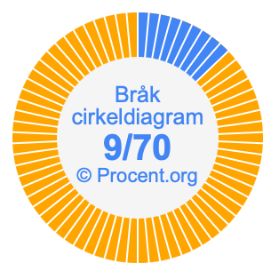 Dessutom kommer vi också att illustrera bråket 9/70 i ett cirkeldiagram och 9/70 som procent i ett cirkeldiagram.